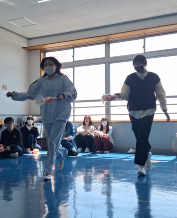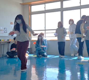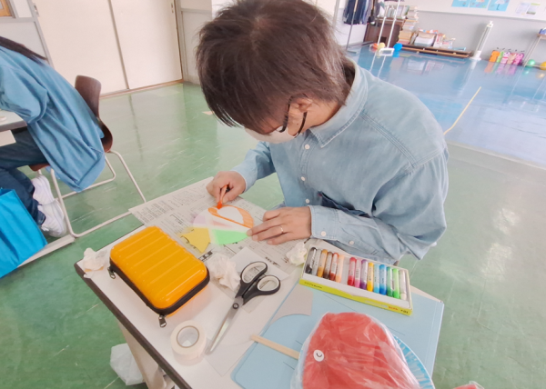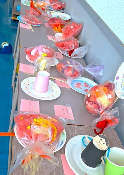 完成した作品を使って金魚運びリレーゲームを行いましたよ。