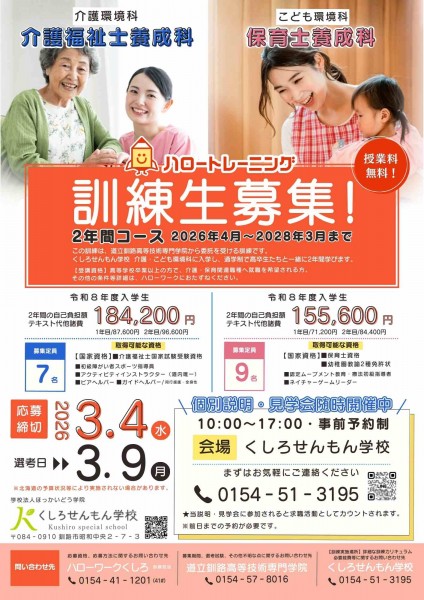 この訓練は、道立釧路高等技術専門学院から委託を受ける訓練です。