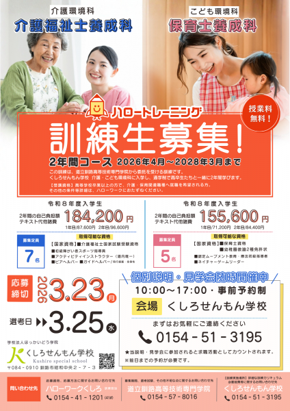 この訓練は、道立釧路高等技術専門学院から委託を受ける訓練です。