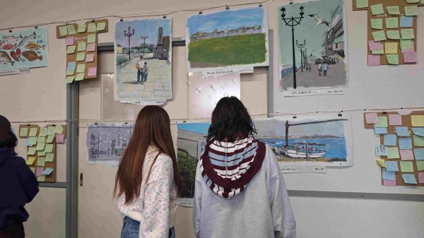 こども環境科2年の安藤さんは「釧路出身だが、普段何気なく通っていた風景がこんなにステキな絵になって、釧路ってステキだな、素晴らしいなと思った。これから子ども達と関わっていく中で、釧路で育った子ども達が、より釧路を好きになってもらえるような環境で関わっていきたい」と話していました。