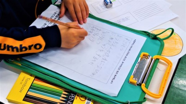 校内見学のあとはことば遊び体験を行い