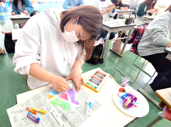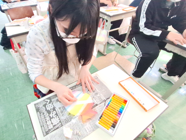 クレヨンを塗ってティッシュでこする作業を繰り返して