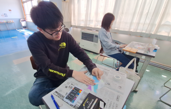 完成した作品を使って金魚運びリレーゲームを行いましたよ。