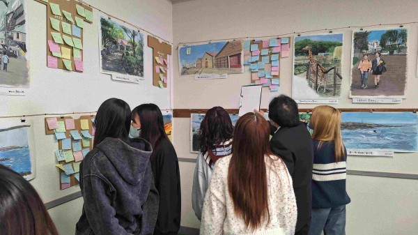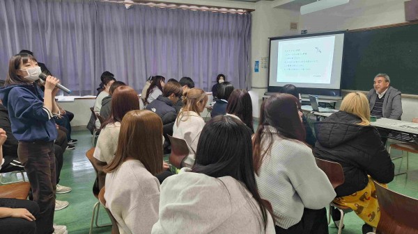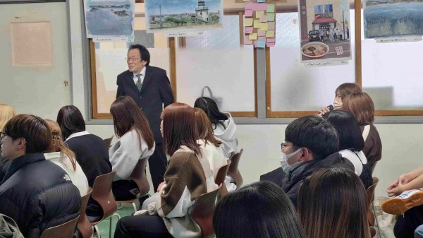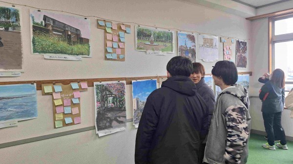 介護環境科2年の城川さんは「弟子屈出身で就職も地元に戻るが、木島先生の絵を通して、釧路にはこんなにきれいな景色がたくさんあるんだと知った。また釧路に遊びに来たらきれいな景色巡りをしたい」と話し、感謝の気持ちを伝えていました。