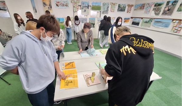 こども環境科2年の安藤さんは「釧路出身だが、普段何気なく通っていた風景がこんなにステキな絵になって、釧路ってステキだな、素晴らしいなと思った。これから子ども達と関わっていく中で、釧路で育った子ども達が、より釧路を好きになってもらえるような環境で関わっていきたい」と話していました。
