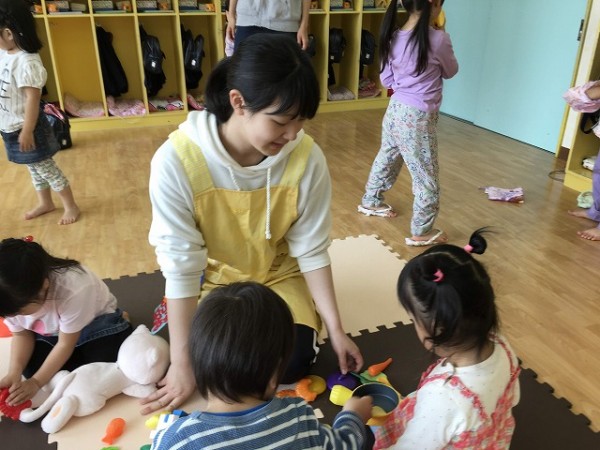 保育基礎演習の実践2回目ということで、園の雰囲気にもなれ、学生は積極的に園児たちと関わろうと頑張っていました。