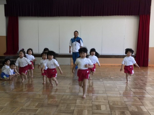 生き生き、はつらつと運動する園児たち。よーいドン!