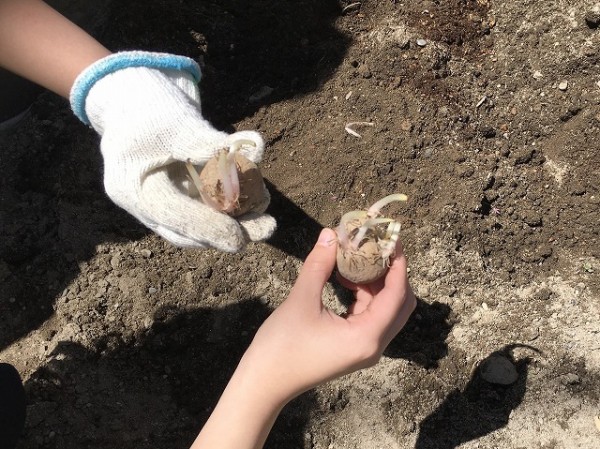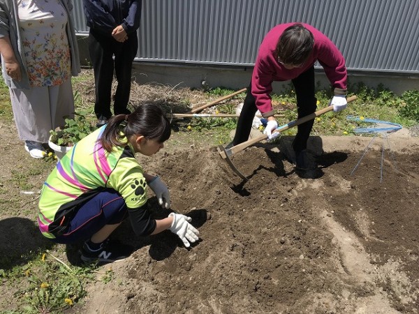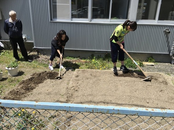まずは、学校の敷地内の一角に準備した畑で「命を育てよう!」と畑作りに取り掛かりました。