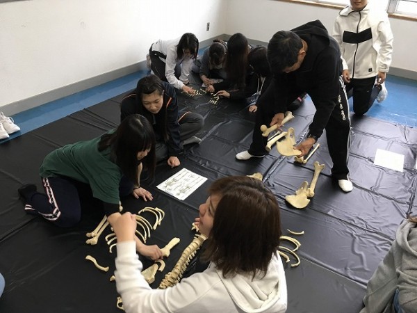 後半の演習では、実際に標本の組み立て、骨格の仕組みの理解を深めました。