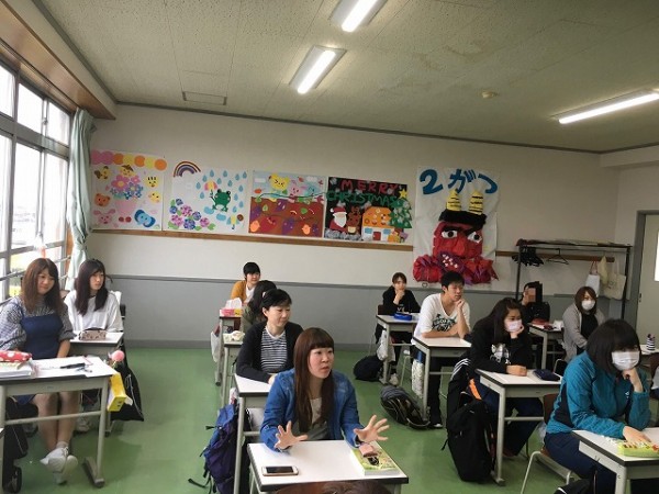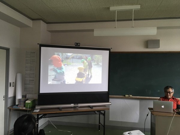 30年以上に渡る幼稚園教育で培われた吉田先生の、どこまでもこども中心な圧倒的保育観に引き込まれていく学生たち。一年後、保育現場に立つ自分の姿を投影しながら真剣な眼差しで授業を受けていました。