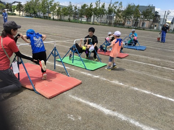 *7月1日に開催された当日は、生憎の雨でかけっこ競技のみの開催となり、残りの競技は15日に延期となりました。保育現場は何が起こるのかわかりません。このような機会も良い経験と捉えて、再度15日に頑張る学生です。