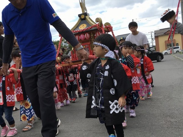 こども神輿も大賑わい「わっしょい!わっしょい!」小さな肩で一生懸命。