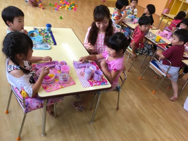 こども環境科1年生の学生とわかばフレンドようちえんへお邪魔しました。教室に入っていくと、園児さんは「こんにちは!」と満面の可愛い笑顔で挨拶してくれました。