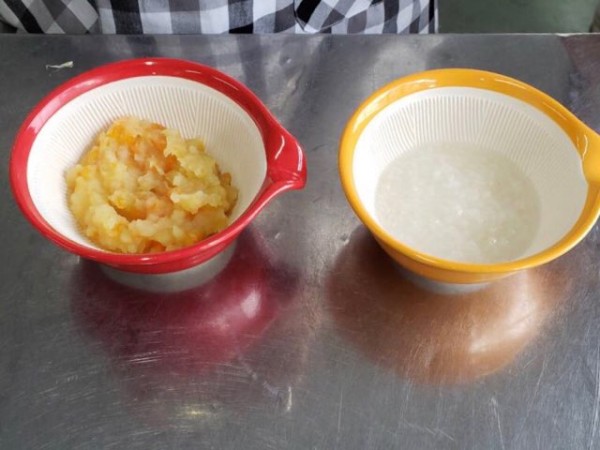 おとなの食事と離乳食の10倍がゆを炊飯器で同時に作りました。