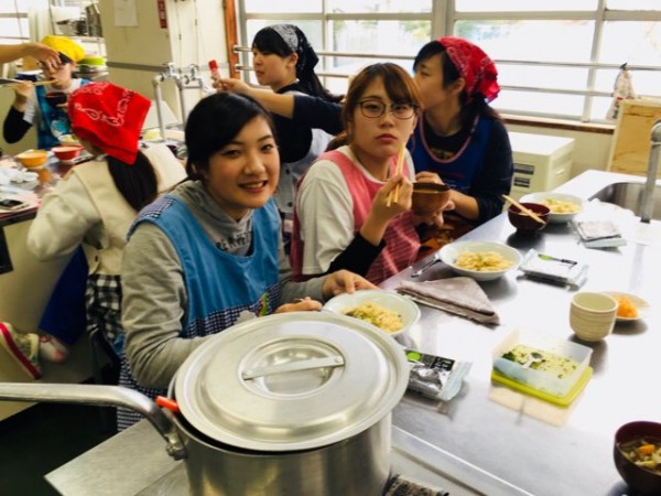 夏から学んで来たこどもの発達・発育と栄養バランスや食事バランス等の基本知識を活かして、いよいよ調理実習デビューした1年生。