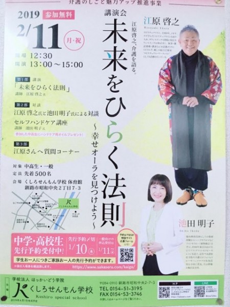 スピリチュアルカウンセラー江原啓之さんとフィトセラピスト(植物療法士)の池田明子さんの講演会を開催します。