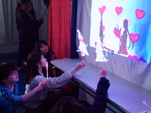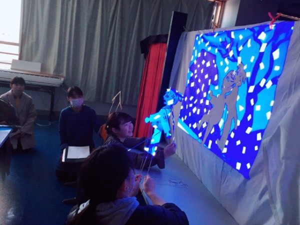 2月には学びの集大成として園児たちを招待して、影絵人形劇を披露します。