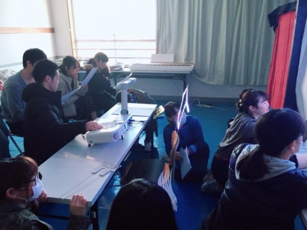この日は少し早めのリハーサルを行いました。約1ヶ月掛けて取り組んで来た影絵プロジェクト。