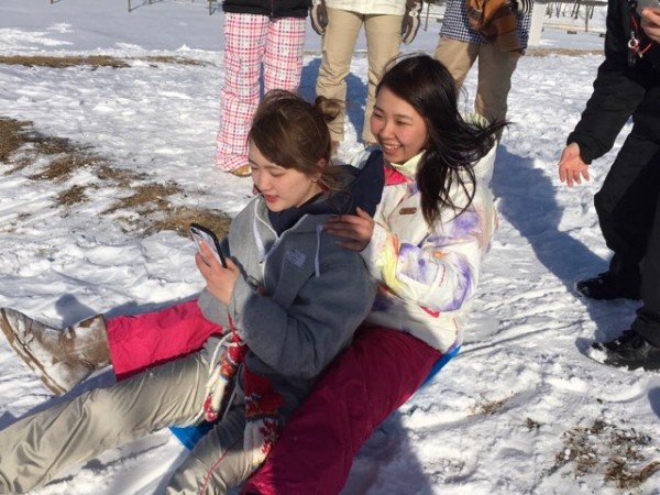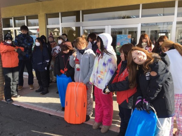 準備万端!服装や遊具など冬の遊びを満喫しようとそれぞれ考えて準備して来ました。「みんな凄いね。僕が1番軽装だ」と吉田先生。