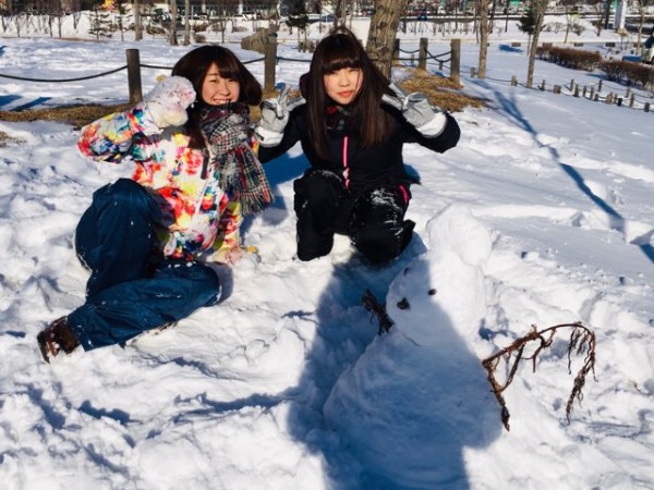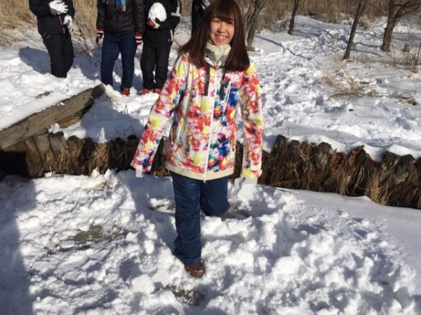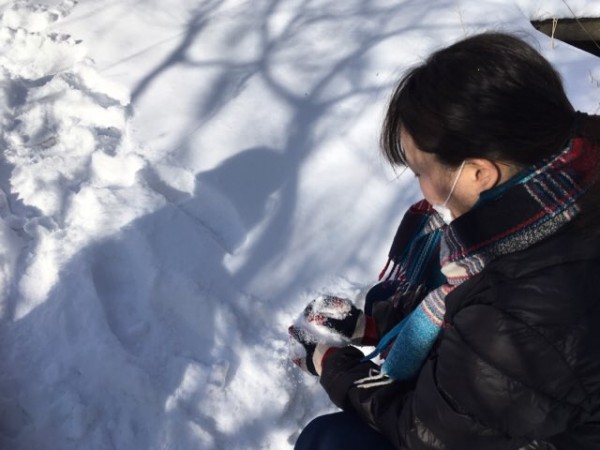 前日の雪が積もり森には15センチ程の積雪が。雪だるま作ろうかな?