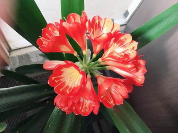 3階の環境教育研究センター 大西先生の研究室で咲く見事なクンシラン。燃える様な緋色が目に飛び込んで来ました!