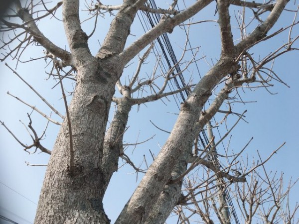 陽気に誘われ外へ出ると、校舎の脇の遊歩道の木々が青空向かってそびえ立ち・・・清々しい青空に手を伸ばすように青葉が繁るのももうすぐです。