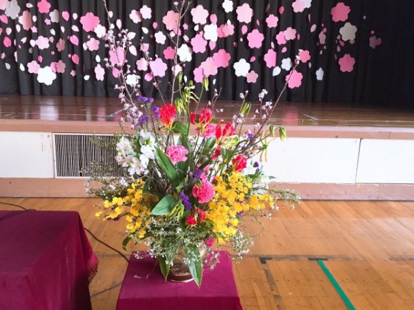 介護環境科 非常勤講師の佐藤瑠美子先生がいけてくださった式花。毎年欠かさず入学式にご自身のいけ花(未生流)を寄贈してくださるのです。本当にありがとうございます。