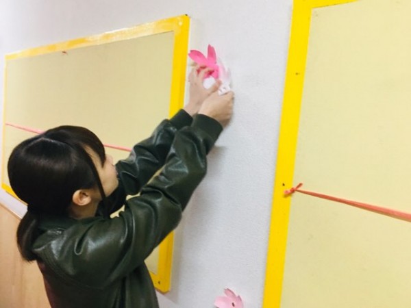 1年前の不安と期待を胸に抱いていた自分を思い出しながら、新入生が少しでも笑顔になれる空間つくりを頑張りました。桜のアーチが皆さんを歓迎していますよ。
