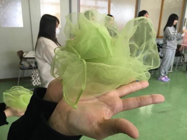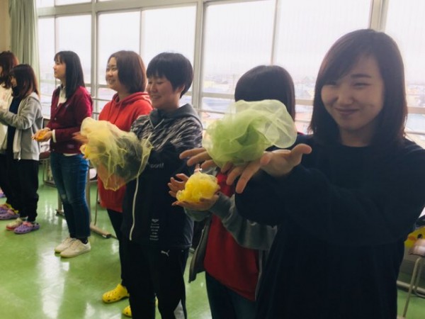 パッ!とお花が咲いたような楽しい驚き。シフォンというフワフワの布を使って乳児への保育の展開を学んでいきます。