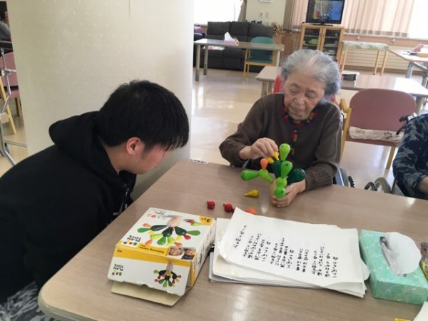 今日紹介するのは介護環境科2年生のアクティビティ・ケアIIの実践と振り返りです。ご協力いただいた高齢者施設は社会福祉法人釧路創生会 老健たいよう。3名ずつ4グループになり、それぞれが立案(毛糸、パズル、アクティビティ・トイ、花瓶作り)準備した4つのアクティビティを提供しました。