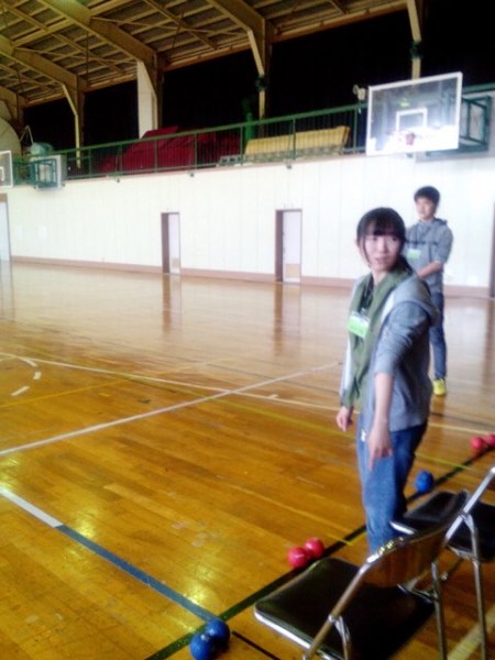 介護は障がい者とスポーツの中から学生主導で「ボッチャ」というスポーツを展開しました。障がいがあってもルールや道具を工夫することでスポーツを楽しめます。それらが伝わった体験でした。