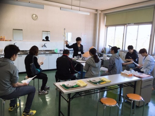 高齢者の食事介助を学びました。嚥下防止用のとろみ食を体験しました。「食事介助体験をしてみて、実際高齢者の方々の助けをしたいとより思いました」