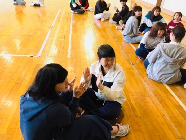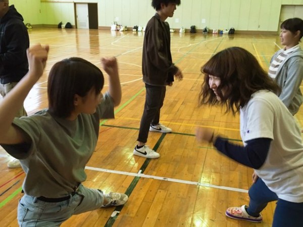 後半は体育館での演習です。保育の現場で活用できるさまざまな運動遊びを教えていただきました。