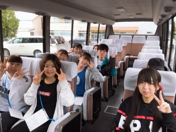 総練習は学校の体育館で行います。幼稚園バスに乗って園児さんと一緒に学校へ向かいます。