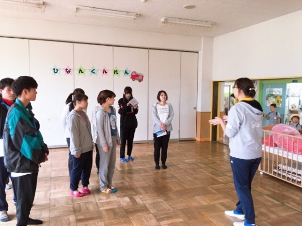 この日は実践授業3回目。こどもの健やかな成長を願い開催される運動会。この園行事にも園児係や用具係の支えるスタッフの一員として、3グループに分かれて参加します。