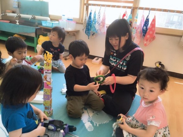 お部屋でままごとやブロック遊びで交流を。