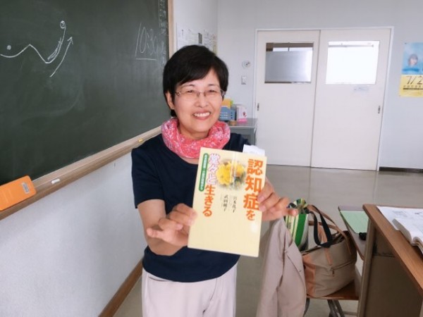 江別すずらん病院 認知症疾患医療センター長 宮本礼子氏、グループホーム福寿荘 総合施設長 武田純子氏の共同著書「認知症を堂々と生きるー終末期医療・介護の現場から」2018年5月に初版された認知症ケアの最新情報が満載された著書も活用しながら授業を進める五十嵐先生。(本ニュースでも参考文献として活用しています)