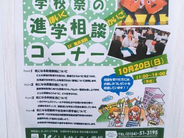 10月20日(日)くしろせんもん学校の学校祭を開催します。