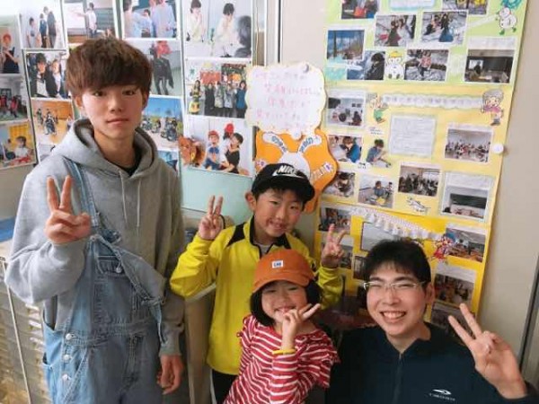 本ニュースでも紹介した「まちがだいすきしょうわたんけんジャー2」で学校見学に来てくれたお友達が再び来校してくれました。保護者様の許可をいただき写真撮影のご協力をいただきました。一緒に遊んだ学生や卒業生と一緒にハイポーズ。小林家の皆さま、ありがとうございました。