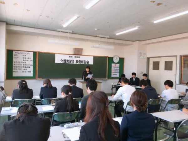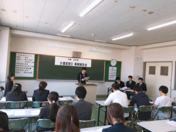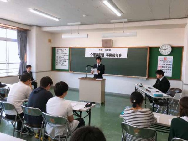 介護環境科2年生は6月から7月にかけて地域の介護施設で行った実習の報告会を開催しました。