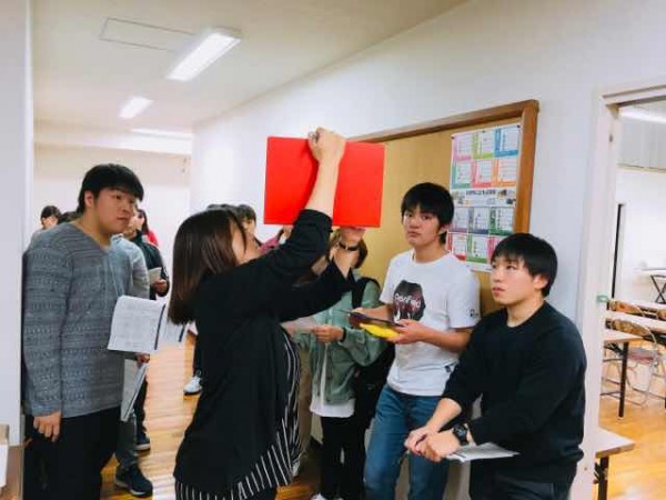 今年は全クラス対象の学校行事として開催しました。直前に会の流れの説明を真剣に聞く介護環境科1年生。
