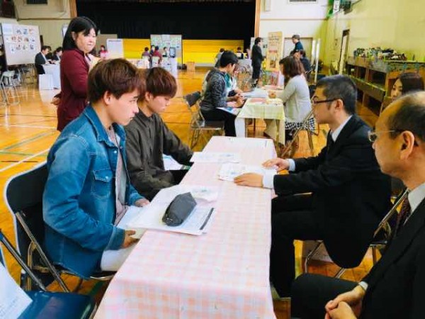 1970年開校の本校は、大勢の卒業生を地域に送り出しています。この日も卒業生が企業職員として説明会に参加していました。