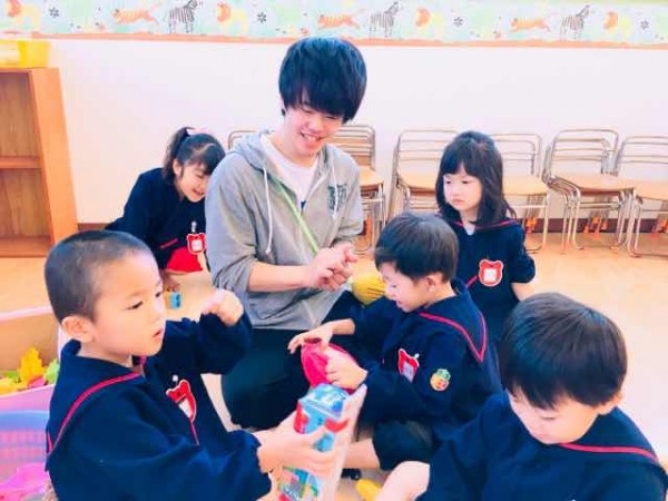 自身が幼稚園の時に出会った男性教諭の温かさに強く憧れ、保育者の道を目指し本校に入学した田中さん。成長と共にその先生の人格に近づきたいと、自身もますます笑顔で優しく人と接する青年へと変化していきました。