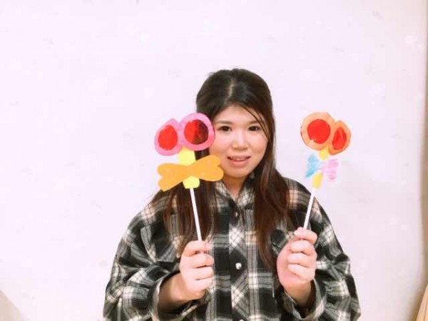 これは実習でこどもたちが制作したトンボのメガネ。