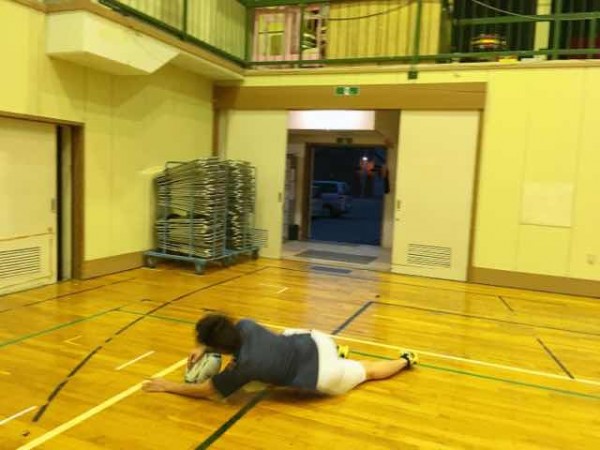 本校の1階の西側にはバスケットコートが2面取れるほどの大きさの体育館があります。