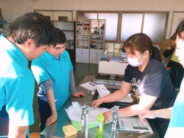 学生はその種類や役割、尿量に合ったおむつやインナーついて、自分たちで実際に実験を行い、尿量の計測や肌触り等を体感しました。