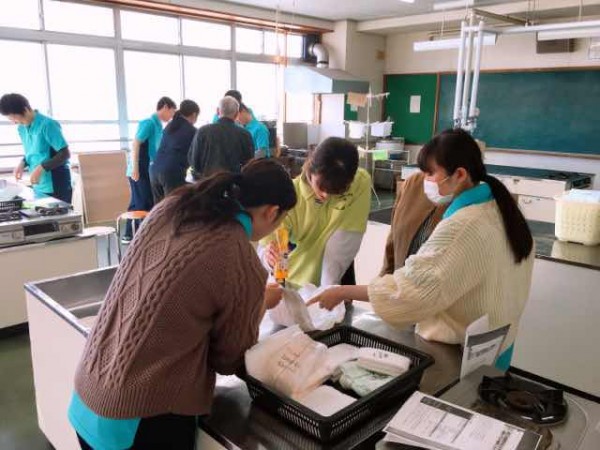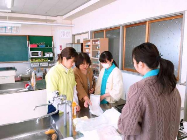 この日は公開授業として、教員も授業見学をしました。左から2人目は介護環境科学科長の渡邊千華子先生。一人ひとりへの思いが熱い指導熱心な先生です。