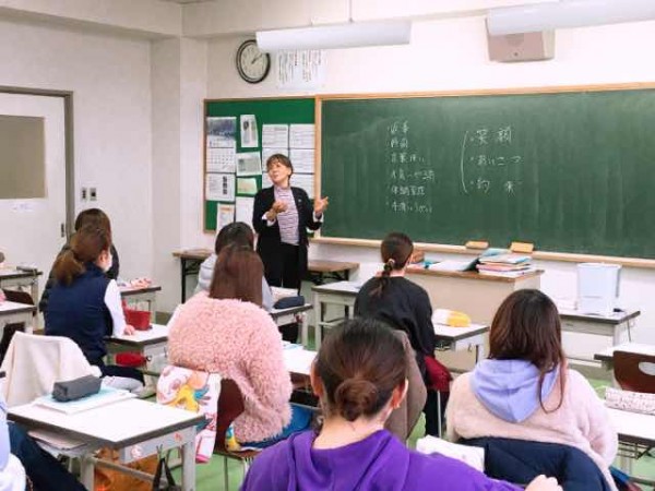 こども環境科1年生が受講していたのは「保育実習指導I A」。担当は元保育園園長先生の田仲先生。翌週に控えた保育実習へ向けて、最後の注意点を確認していました。