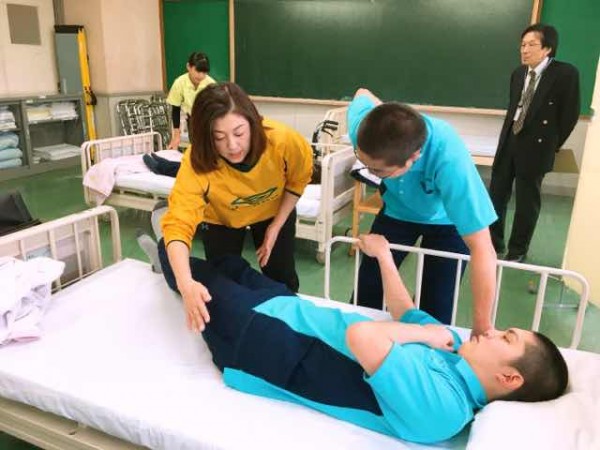介護環境科1年生では「生活支援技術II -②」を受講しました。担当は介護職やケアマネージャー職が長い伊東先生。『利用者の方の思いに寄り添う介護』を中心に授業が展開されていきます。「常に利用者さんが優先ですよ」と伊東先生。