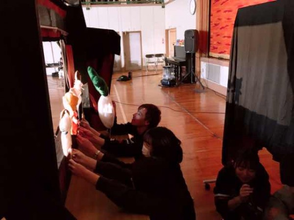 舞台裏を覗くと・・・こどもたちのために必死に頑張る学生たちがいました。